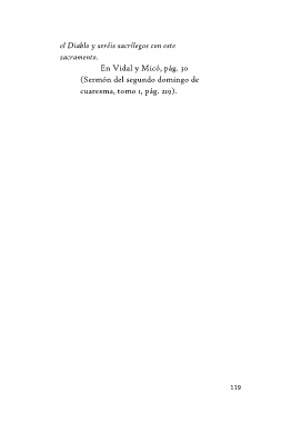 el Diablo y seréis sacrílegos con este sacramento. En Vidal y Micó, pág. 30 (Sermón del segundo domingo de cuaresma, tomo 1, pág. 219). 119
